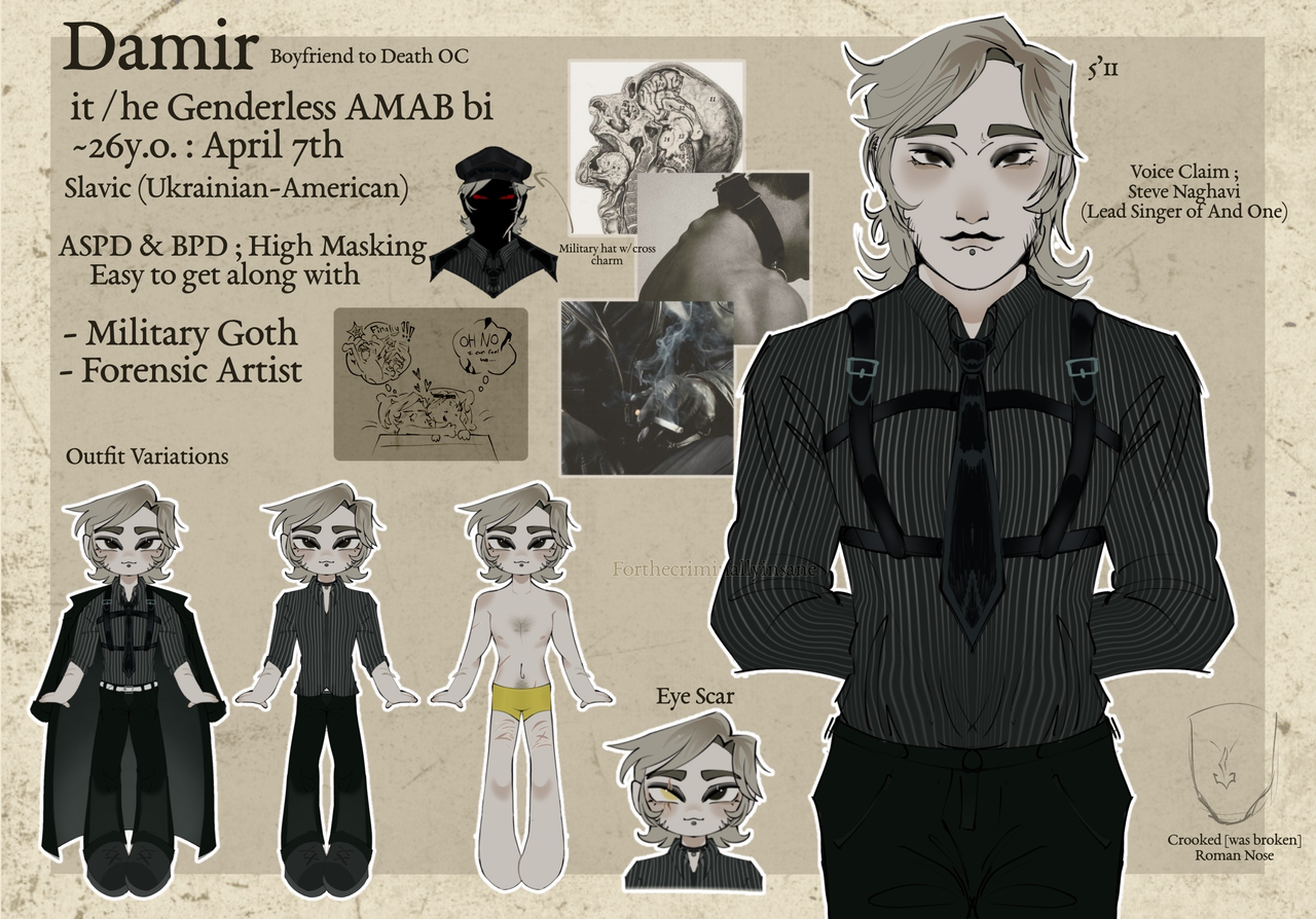 - Damir is my oc for Boyfriend to Death & The Price of Flesh, his placement in the story has two different "main timelines". The first one is when he is an option for the m/c to "date" aka be tortured by. The second timeline is the one I focus on more-- when he is with Rire.